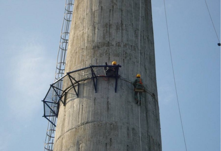 4、對煙囪安裝爬梯踏步板、平臺及欄桿等焊接處進行除銹防腐刷油漆。