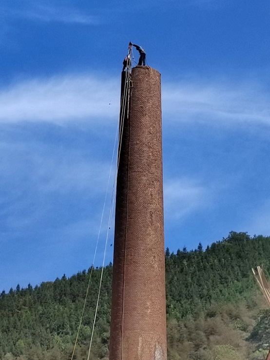 3、煙囪拆除前,應(yīng)仔細檢查爬梯腐蝕程度,不安全的地方進行加固,以便施工上下。