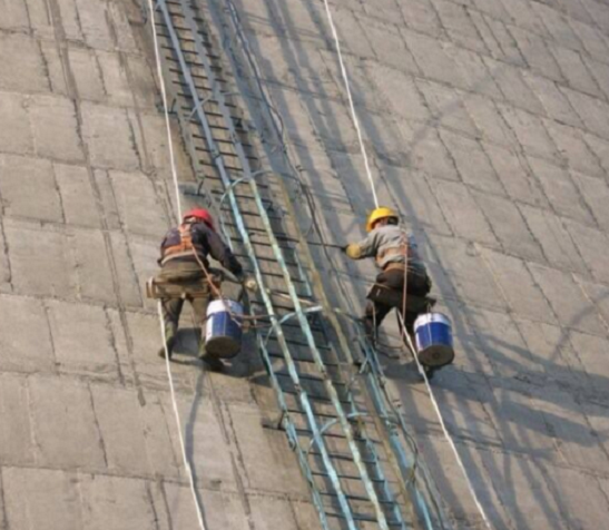 本工程鍋爐砼煙囪60米從下到上對爬梯護網(wǎng)及安全平臺脫焊部位補焊加固,如果腐蝕嚴重的部位要進行更換,爬梯、護網(wǎng)、平臺金屬件全部防腐一底二面。